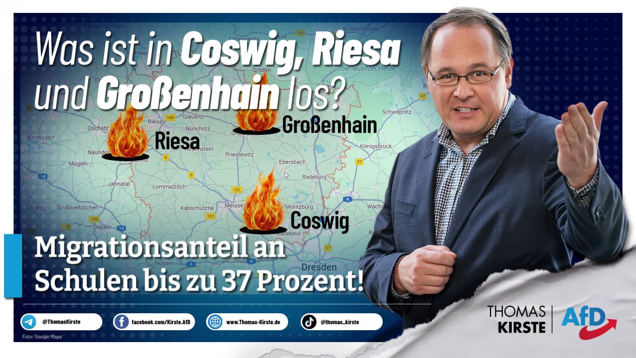 Der Anteil an Kita-Kindern im Landkreis Meißen, in deren Zuhause nicht vorrangig Deutsch gesprochen wird, ist binnen nur zwei Jahren um über 35 Prozent angestiegen: Wie eine Kleine Anfrage (Drs.-Nr.: 8/3509) des Meißner AfD-Landtagsabgeordneten Thomas Kirste an das sächsische Kultusministerium ergab, wuchsen zum Stichtag des 1. März 2022 etwa 532 Kinder im Nichtschulalter im Landkreis